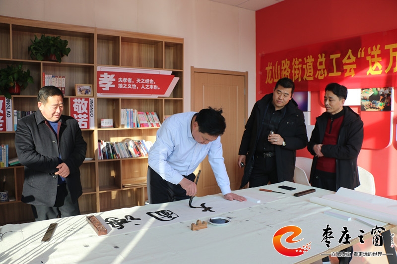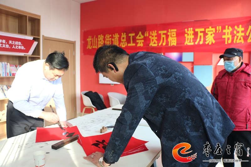 “給大家送‘福’啦!”伴隨著新年的祝福,龍山路街道總工會(huì)的工作人員們正將書法家們寫好的一張張福字雙手遞給在場的職工。1月16日上午,市中區(qū)龍山路街道總工會(huì)在公勝街紅色驛站組織開展“送萬福 進(jìn)萬家”書法公益活動(dòng),邀請省書法家協(xié)會(huì)的4位書法家代表,在活動(dòng)現(xiàn)場手寫福字和對聯(lián),為廣大職工群眾以及轄區(qū)企業(yè)送去新春的祝福和問候。