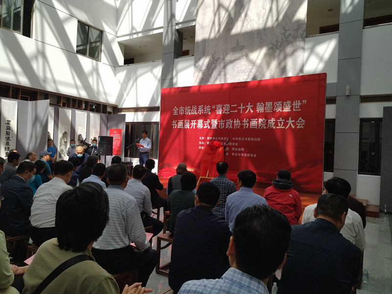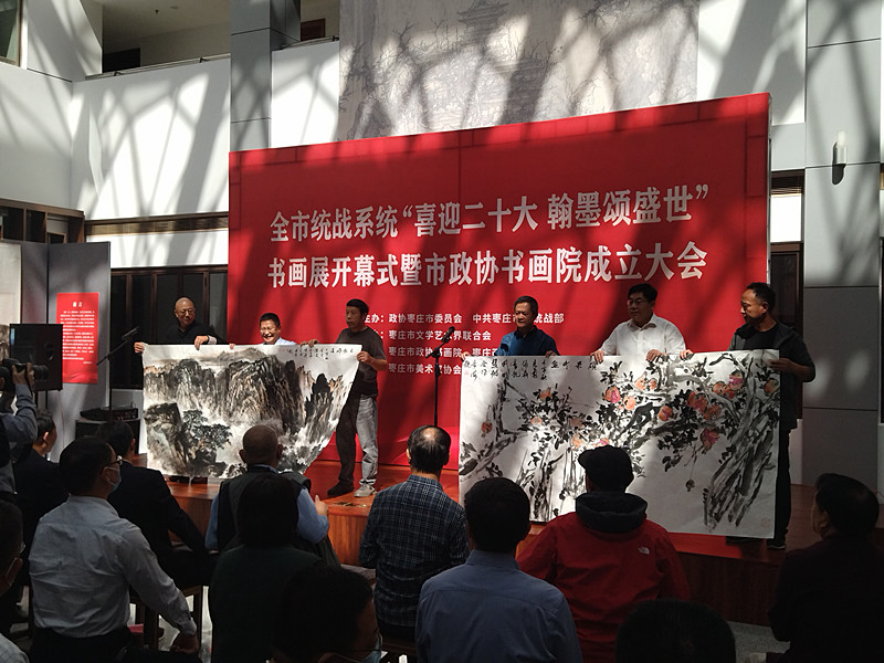 喜迎二十大,翰墨頌盛世。為表達全市統(tǒng)戰(zhàn)系統(tǒng)和廣大政協(xié)委員紅心向黨、共筑復興的強烈心聲, 9月23日,山東省棗莊市統(tǒng)戰(zhàn)系統(tǒng)“喜迎二十大翰墨頌盛世”書畫展開幕式暨棗莊市政協(xié)書畫院成立大會,在棗莊市政協(xié)機關舉行。本次展覽由政協(xié)棗莊市委員會、中共棗莊市委統(tǒng)戰(zhàn)部主辦,棗莊市文學藝術界聯(lián)合會協(xié)辦,棗莊市政協(xié)書畫院、棗莊畫院、棗莊市美術家協(xié)會、棗莊市書法家協(xié)會承辦,并出版了展覽作品集。