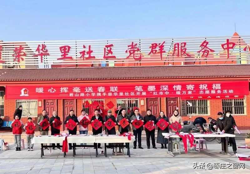 1月11日下午,接到區(qū)融媒體中心的電話,《棗莊之窗》小編驅車來到榮華里社區(qū),感受這里不一樣的年味氣氛。來到社區(qū)大院,看到書法愛好者、社區(qū)紅馬甲、學生們,還有周邊的社區(qū)居民早早來到大院忙乎了起來,你搬案桌,我裁紙,他研墨水,準備著一場書寫春聯(lián)的筆墨盛會。
